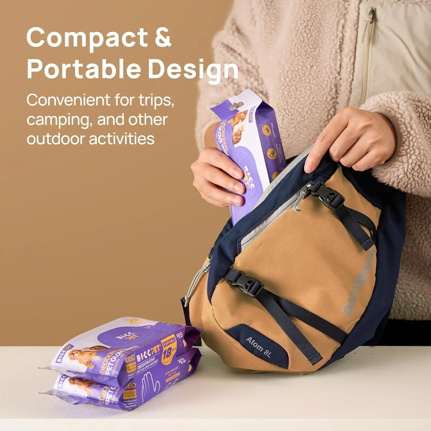Compact and portable design makes these glove wipes perfect for life on the go. Whether you're traveling, camping, hiking, or enjoying outdoor adventures with your pet, keep them clean and fresh wherever you are. Lightweight packaging fits easily in your bag, car, or backpack for convenient pet care anytime, anywhere!